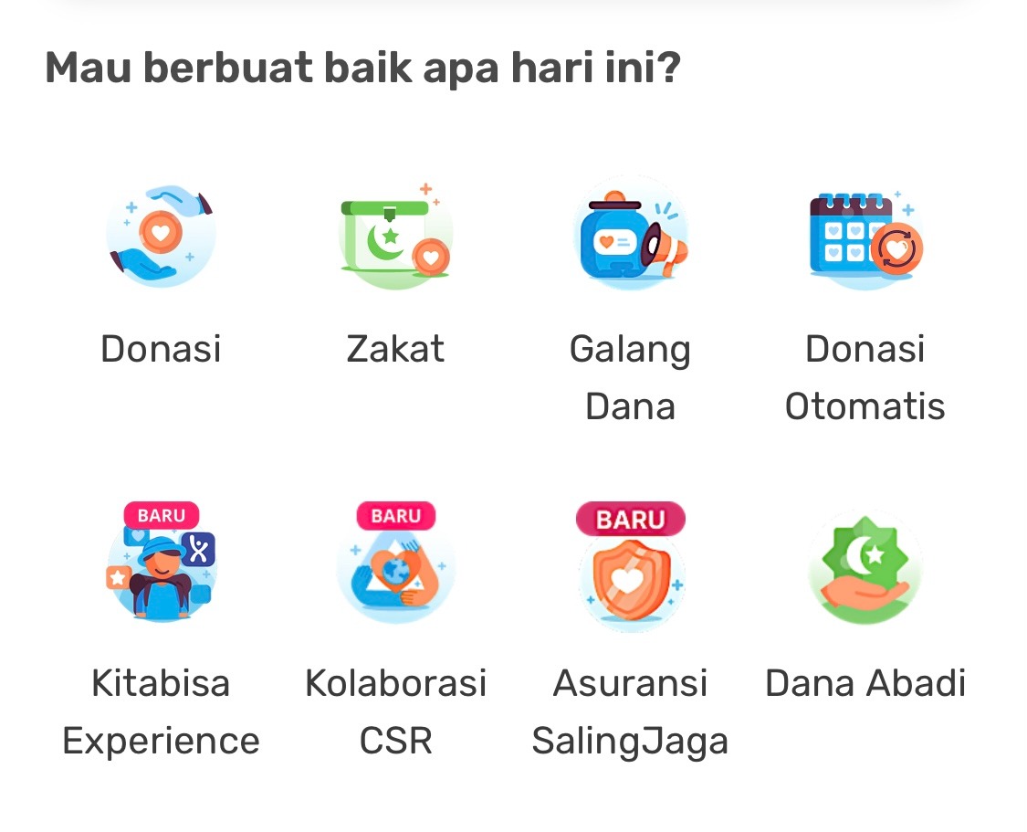 Aplikasi Kitabisa banyak menawarkan fitur penggalangan dana yang dirancang agar proses donasi jadi lebih mudah, cepat, dan teratur. Mulai dari donasi, zakat, hingga asuransi saling jaga. Tidak hanya itu, Kitabisa juga menyediakan fitur Galang Dana bagi masyarakat atau lembaga yang ingin membuat bantuan donasi sendiri, dan banyak pilihan fitur membantu sesama lainnya.